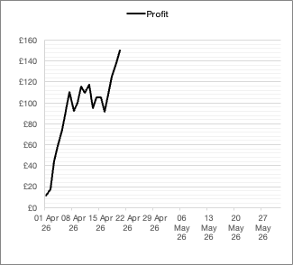 Bank on 1st April: £1,000 Current Bank: £1,150 Target £1,231 Profit / Loss (£): £150 Profit / Loss (%): 15%